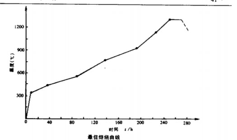 振動成型后的坯件,需經適當焙燒,才能制出質量合格的中頻電爐石墨坩堝。合理的焙燒制度是保證中頻電爐坩堝質量,提高產品成品率的重要因素。實驗證明,升溫過快,坩堝易裂;升溫過慢或焙燒時間過長,又降低生產率,提高成本。經試驗,確定最佳焙燒曲線如附圖所示。焙燒最高溫度1250~(],焙燒總時間287小時。整爐焙燒,其成品率達99%以上。