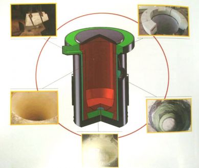 坩堝的設計為了能更讓爐襯料中的水份能更好更快的排出,坩堝表面會每間隔25CM就鉆一個3―5MM的細孔,在放入爐內前要把坩堝模具表面清潔干凈,然后用膠布把細孔封住,這樣做的 目的是讓其表面沒有有鐵銹或灰塵,這樣才能保證沒有雜物參入石英砂內而影響到爐襯燒結的效果.另外封住的細孔可以防止在 震實作業時出現跑料現象。坩堝在放入爐內時我們要保證坩堝“一平、二正、三相等”的原則,“一平”是指坩堝在放如爐內后要平穩,不能有大范圍的晃動,防止在加爐襯料或進行排氣工作時坩堝出現移位?!岸笔侵港釄宸湃牒蟛荒苡袃A斜現象,要保證坩堝上下在一條垂線上。“三相等”就是指坩堝的位置一定要在正中位置,要保證坩堝壁每以點到線圈的距離都是相等的,這樣將來爐襯的厚度才能一致。這幾點非常重要,因為坩堝的位置是否正確直接影響到爐襯的使用壽命。放好坩堝后還有一個重要的步驟,就是要在加爐襯料前一定要把坩堝底部平面的石英砂進行刮毛工作,因為現在的爐底經過震實之后密度很大,刮毛時很難達到所需深度,我們可以先用排氣叉用力把爐底料插松,然后在刮毛,這樣做的目的是為了避免這個部位很容易出現的分層現象。